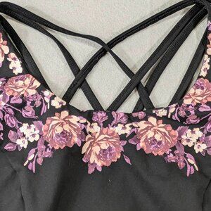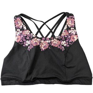 Torrid Low Impact Wireless Strappy Back Active Sports Bra Black Floral 3X 22-24
