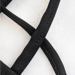 No tears, stains or holes, some of the decorative stitching on back lattice straps in missing (see photo)