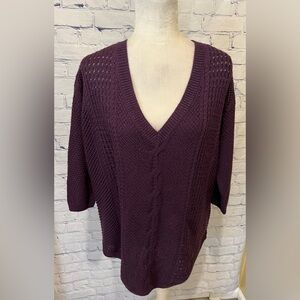 Torrid Lurex Pointelle Tunic Sweater Wool Blend Metallic Purple 1/1X