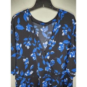 Torrid MINI STUDIO KNIT FAUX WRAP DRESS Blue Floral Stretch Size 4