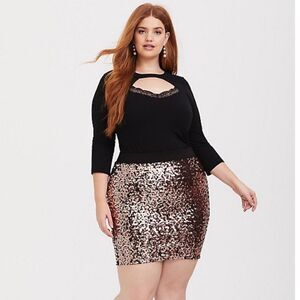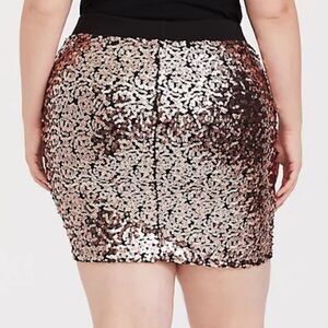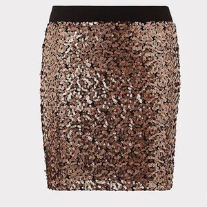 Torrid MINI SEQUIN SKIRT, size 2, Rose gold/ black. Shimmer and shine in a body-skimming mini skirt that's a playful addition to your closet.