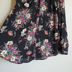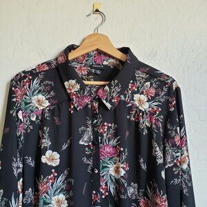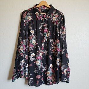 Torrid Madison Black Floral Butterfly Georgette Blouse Top Button Front Long Sleeves Size Women's 3X Plus
