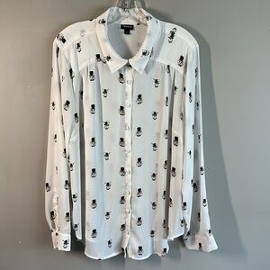Torrid Madison Georgette Button Front Long Sleeve Shirt 2X Novelty Fox Rabbit