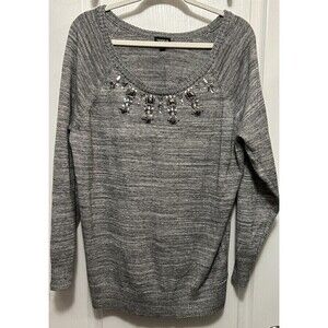 Torrid Marled Embellished Pullover Sweater Gray Rhinestones Classic Plus Size 1X