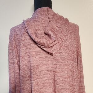 Cozy marled pink cardigan with hood. Ideal for layering.