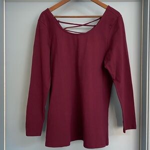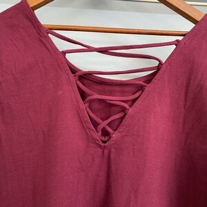 Torrid Maroon 3/4 Sleeve Top with Criss Cross Back Detail, 2X
