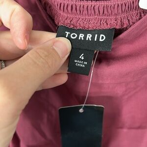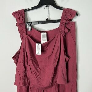 Torrid Maroon Challis Smocked Ruffle Top & Wide Leg Pull On Pant Set NWT