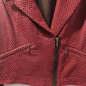 Torrid Maroon Red and Black Checkered Moto Knit Zipper Jacket in Size 2