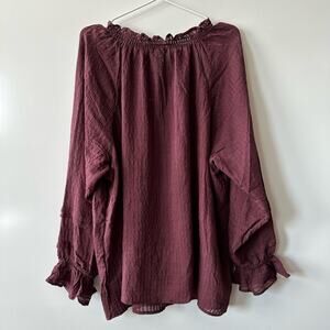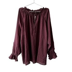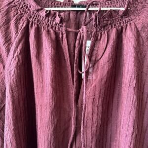 Torrid Maroon Stripe Gauze Lace Up Peasant Top size 3