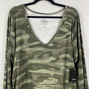 Torrid Maternity Ruched Side Tunic Tee Size 2X Camo V Neck Long Sleeve