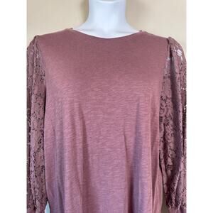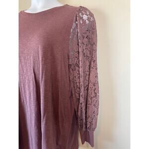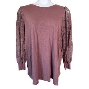 Torrid Mauve Knit Lace Sleeve Top XXL Plus Size Romantic Puff Shoulder Blouse