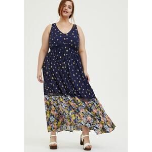 Torrid Maxi Challis Navy Blue Floral Dress Size 3X