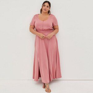 Torrid Maxi Dress 0 Large 12 Smocked Waist Short Sleeve Dusty Rose Pink NEW