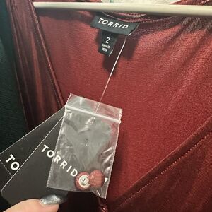 Torrid Maxi Dress Sz 2X 2 Liquid Knit Tea Length Red Metallic Holiday Dress New