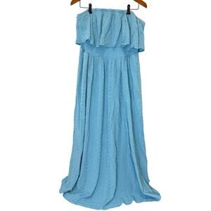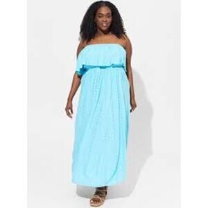 This beautiful Torrid Maxi Eyelet Strapless Smocked Bodice Dress in Blue Topaz is perfect for any occasion!