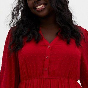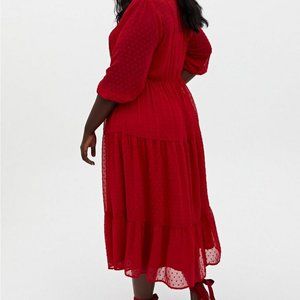 Torrid Maxi Midi Chiffon Clip Swiss Dot Pleated Red Dress