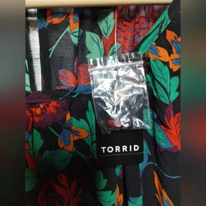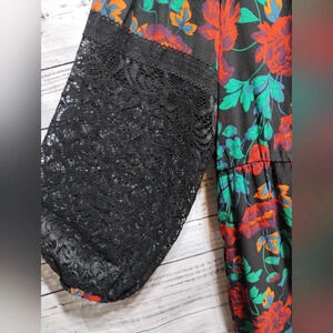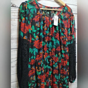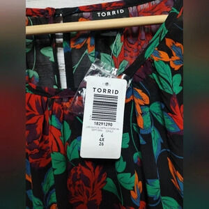 Torrid Maxi Peasant Dress Chiffon Floral Black size 4X Boho Lace Fall Moody