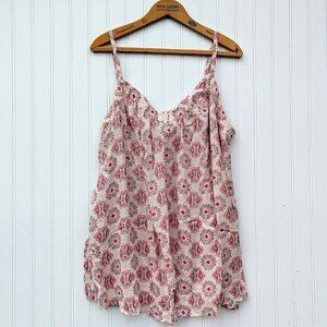 Torrid medallion print stretch back cami in coral geo print, size 2X. In gently preowned condition, no flaws noted.