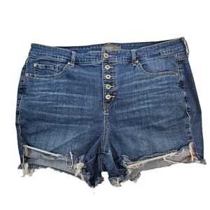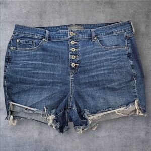 Torrid Medium Wash Raw Hem Button Fly Stretch Denim Jean Shorts Size 20 S37
