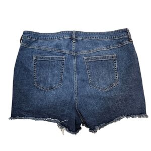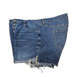 In excellent condition Torrid Medium Wash Raw Hem Button Fly Stretch Denim Jean Shorts Size 20 Women's Plus.