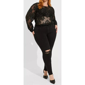 Torrid Mesh With Embroidery Long Sleeve Blouse