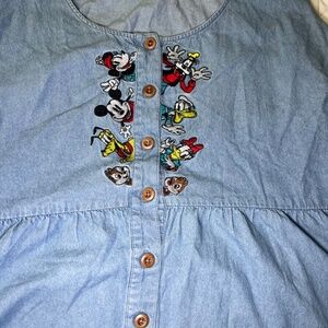 Very cute Mickey and friends dress with back tie. USED in fairly good condition and 2 rips that is appx .5 inch in size on sides of dress near ties of dress.