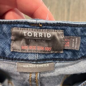 Torrid Mid Rise Slim Boot Cut Jeans Distressed Vintage Stretch Blue Size 24T
