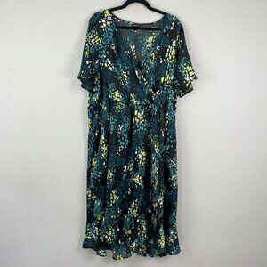 Torrid Midi Bubble Charm Flutter Sleeve Wrap Dress Black Green Plus Size 3X