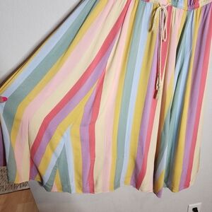 Torrid Midi Challis Off-Shoulder Dress Rainbow Stripe Stretch Size 0 Lrg pockets