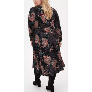 Torrid Midi Challis Skater Dress Black Paisley Plus Size 1 1X Boho Festival
