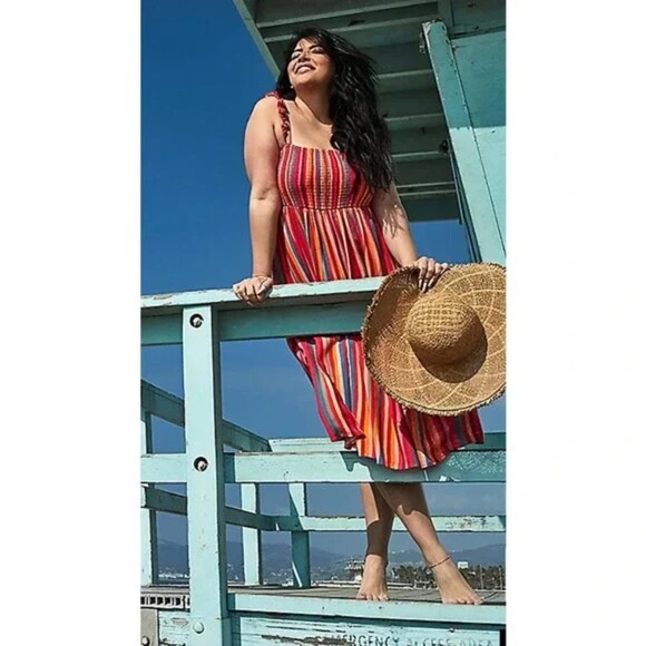 Torrid Midi Challis Striped Smocked Tiered Dress - 3. This item is new with tags attached.