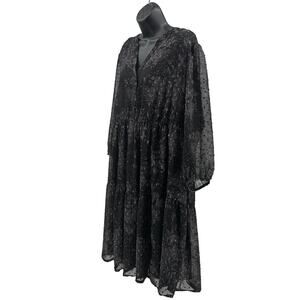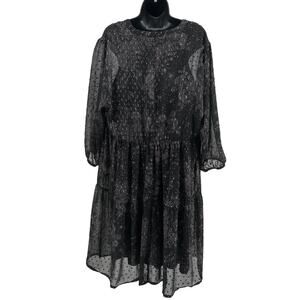 Torrid Midi Dress WMNS 2X Black Gray Swiss Dot Sheer Tiered Long Sleeve V-Neck