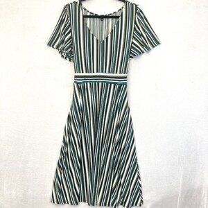 Torrid Dress Womens 2 Black Teal White Striped Fit Flare Midi Short Sleeve