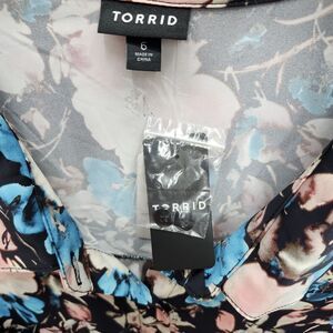 Torrid Midi Dress Womens 6X Black Floral Elastic Waist Button Up Long Sleeves