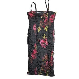 Torrid Midi Mesh Shirred Bodycon Floral Dress Size: 00