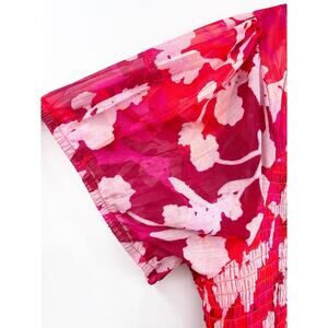 Torrid Midi Pink Floral Lace Up Smocked Dress Shady Rose 4 4X 26 Boho Tea Party
