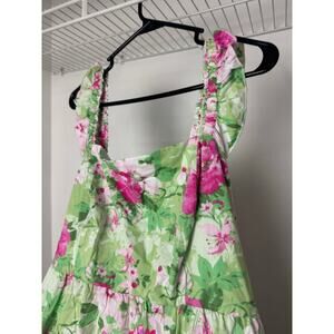 Torrid Midi Poplin Tiered Ruffle Strap Dress Green Floral NWT