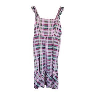 Torrid Midi Poplin Tiered Ruffle Strap Dress Pink Green Plaid Plus Sz 2x Wicked