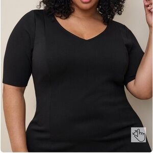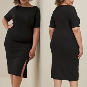 Torrid Midi Studio Cupro Slide Slit Bodycon Dress Black Short Sleeve LBD Size 2X