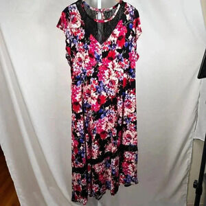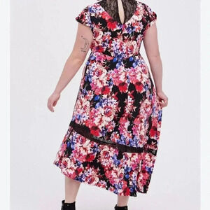 Torrid Midi Studio Knit Asymmetrical Size 3 Dress Floral Vibrant Lace Romantic Flowy Figure Flattering