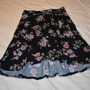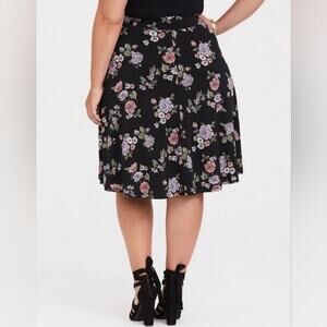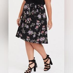 Keywords: Torrid, skirt, floral skirt, black skirt, plus size, knee length, tie waist, women's skirt, floral print, casual skirt, boho skirt, spring skirt, summer skirt
