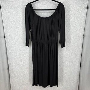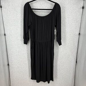 Torrid Midi Supersoft Knit Slit Dress Size 2X Black Casual Pockets Stretch NEW