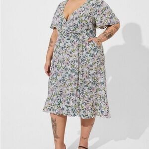 Torrid Midi Swiss Dot Flutter Sleeve Wrap Dress Size Large