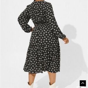 Torrid Midi Swiss Dot Pleat Long Sleeve Dress NWT