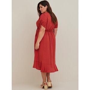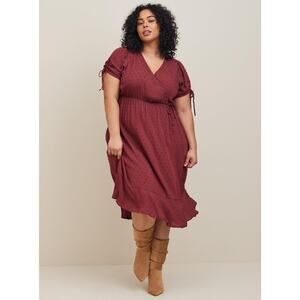 Torrid Midi Swiss Linen Surplice Dress Faux Wrap Burgundy 0 / Large / 12