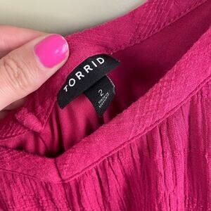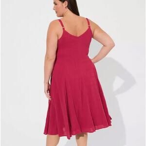 Torrid Midi Textured Cotton Trapeze Dress in Red Bud