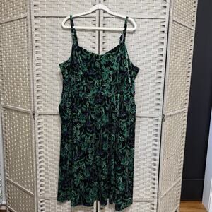 Torrid Midi Velvet Skater Dress Size 3 3X 22-24 Green Floral Whimsigoth Pockets