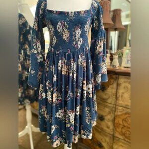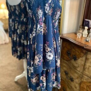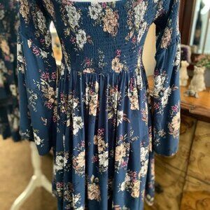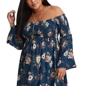 Torrid Mini Challis Off-Shoulder Skater Dress Smocked Bell Sleeves Floral