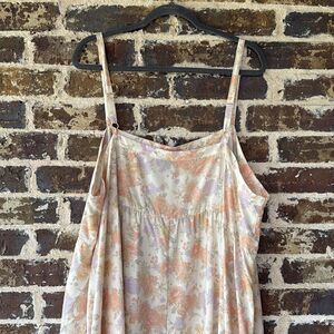 Super lightweight and cool for summer in a pretty peach pastel floral print. Adjustable straps.
