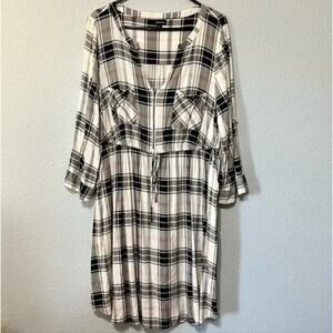 Torrid Mini Challis Zip Front Shirt Dress White Black Pink & Green Plaid 2X